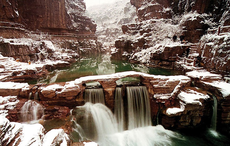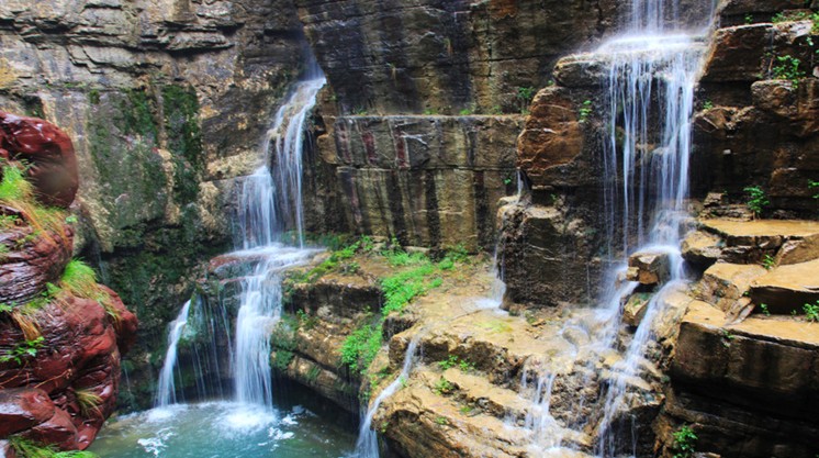 云臺山當?shù)厝朔Q小泰山,傳說山頂有泰山奶奶的行宮,所以山上一些廟宇、景點都是仿泰山修筑和命名。中天門是小憩的好地方,在此南眺,夾谷峪一覽無余,盡收眼底,兩面山勢磅礴,郁郁蔥蔥。一到春天,山上的梨花、桃花、柿子花、山楂花及各種花草相繼開放,姹紫嫣紅。特別是清明前后,漫山盛開一樹樹潔白的梨花,似皚皚白雪,覆蓋山坡;間或幾枝桃花吐艷,如殷殷胭脂點綴其間,景色十分迷人。秋到云臺山,滿山的紅葉,如紅星閃爍,點綴著蒼松翠柏。山頂遠望,泰萊平原,汶河西流,一覽無余。版權(quán)所有山東聊城聊之旅國際旅行社有限公司,轉(zhuǎn)載必究!百丈崖下的鵓鴿樓水庫,那一汪碧水,似一塊綠色的寶石,瑩瑩閃爍。兩兩情人,劃船漫游;垂釣老翁,蹲坐四周,更增添了云臺山的風韻。