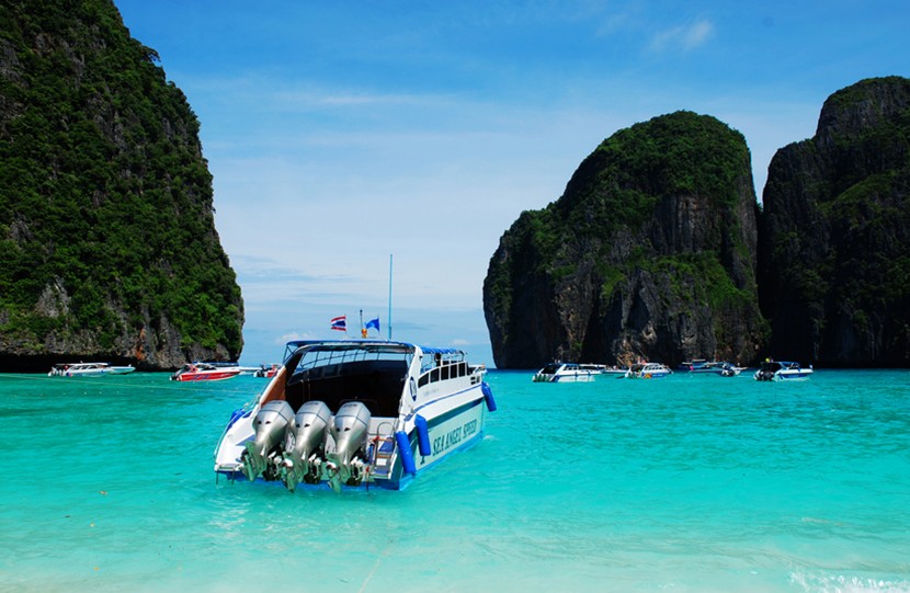 由各種途徑抵達(dá)普吉或甲米之后,終于可以乘船前往皮皮島了。如果游客在普吉的旅游代理店預(yù)定船票,可乘坐代理店的的小巴(Mini Bus)直達(dá)碼頭,普吉的詩里島碼頭(Ko Sirey)、馬堪灣碼頭(Makham Bay)、查龍灣碼頭(Chalong Bay)都有船只開往皮皮島,船費(fèi)250泰銖左右,航行時(shí)間約2小時(shí);在甲米市區(qū),有小巴和出租車前往海邊碼頭,可以在趙發(fā)碼頭(Jao Fa)搭船前往皮皮島,航行時(shí)間約1小時(shí)30分。