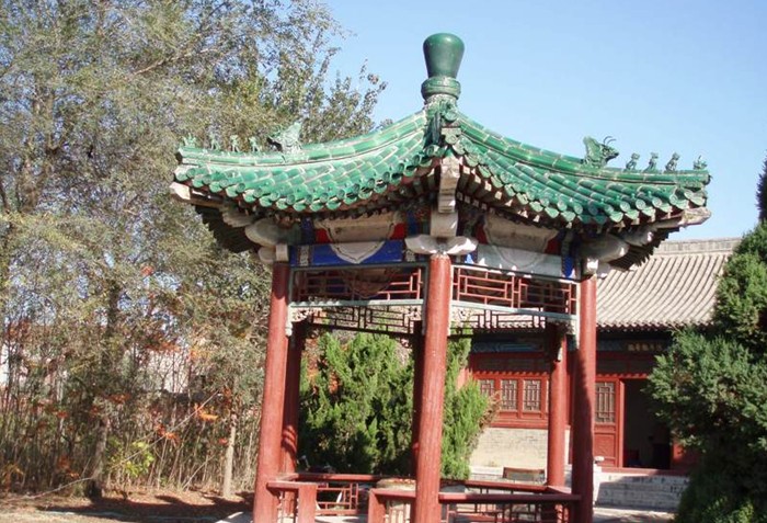 寶云寺內(nèi)有一塔,高36.5米,塔體為八面棱錐體磚木結(jié)構(gòu),自四層以上四面有門,塔的各層建筑風(fēng)格各異,或成鴛鴦斗拱,或成梅花斗拱,雄渾古樸,氣勢磅礴。若登塔頂,需有一定的勇氣,因為每登一層都要繞塔沿半圈,找到另一側(cè)的入口。