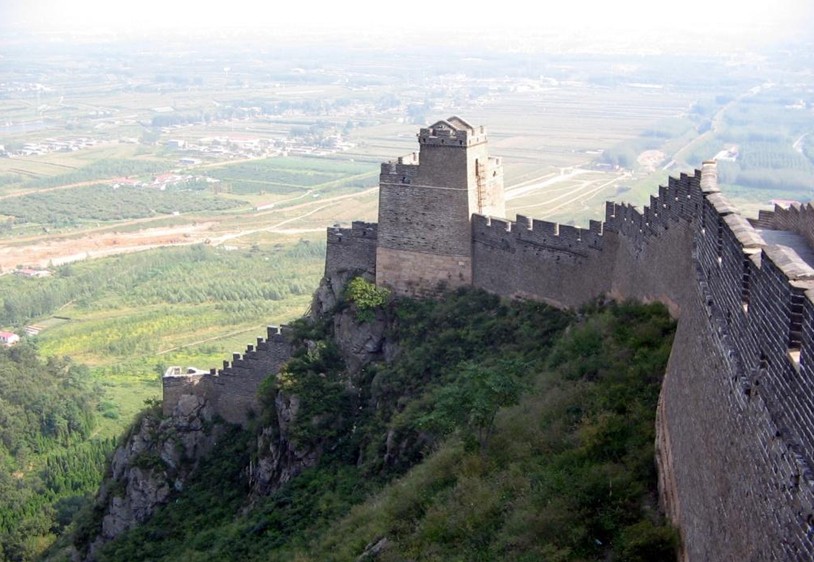 角山景區(qū)集山、城、寺為一體。大門是仿明代城堡建筑形式設(shè)計的。其造型像個“山字”。正額“角山長城”匾是原國務(wù)院副總理、中國長城學(xué)會會長黃華題寫的,背額“碧海峰”匾為當代詩人賀敬之的手筆。有詩云:“自古盡道關(guān)城險,天險要隘在角山,長城倒掛高峰上,俯瞰關(guān)城在眼前。”足以證明角山的險要。角山長城是明朝遼東鎮(zhèn)和薊鎮(zhèn)兩座軍事重鎮(zhèn)的界線,建有敵臺、戰(zhàn)臺5座,關(guān)隘一座。站在角山最高峰大平頂上,極目遠眺,令人遙想到當年古戰(zhàn)場上戰(zhàn)鼓齊鳴、刀光劍影的壯闊場面。