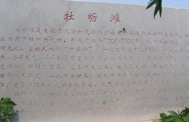 蠣灘形成于距今7000-2000年,是世界上迄今發(fā)現(xiàn)的規(guī)模最大、分布最廣、序列最清晰的古海岸遺跡。分布在寶坻縣南部和寧河縣中部、東部地區(qū)。它是由牡蠣殼堆積而成的,從中可以反映出古海灣的變遷。天津的牡蠣灘,無論從面積上,還是從厚度上,都是世所罕見的,如寧河縣西部東棘坨鄉(xiāng)史莊子到姜莊子間的河道,以及寧河縣東部靠近京山鐵路的裴莊,這兩地牡蠣灘的規(guī)模、剖面層厚度、清晰度、殼體長度世所罕見,對(duì)海洋生態(tài)及海陸變遷等學(xué)科的研究具有寶貴的價(jià)值。