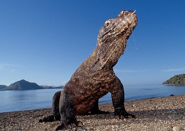 1912年,一位荷蘭科學(xué)家勇登無(wú)名島,對(duì)傳說(shuō)中的巨蜥進(jìn)行人類(lèi)有史以來(lái)的第一次考察。他把無(wú)名島命名為科莫多島,把神秘的巨蜥命名為科莫多巨蜥。三年后,印尼政府把這種地球上其他任何地方都找不到的動(dòng)物視為國(guó)寶嚴(yán)格保護(hù)起來(lái)。