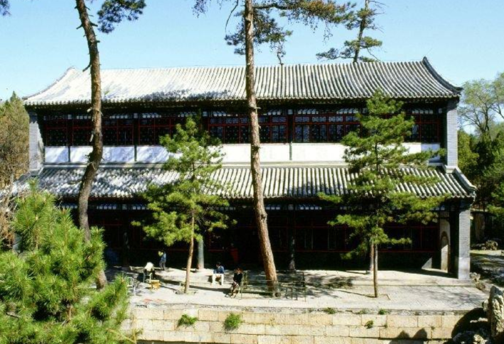 文津閣位于千尺雪景區(qū)之北。建于乾隆三十九年(公元1774年),是內(nèi)廷四閣中第一座建成之閣。乾隆帝對在此建閣貯書極為得意,認為“山莊居塞外,伊古荒略之地,而今則閭閻日富,禮樂日興,益茲文津之閣,貯以四庫之書,地靈境勝,較之司馬遷所云名山之藏,豈啻霄壤之分也哉?”加之每年帝王諸臣、各族首領(lǐng)和外國使節(jié)都云集山莊,將皇家藏書樓建在此地,更可以標榜天朝的文治武功。文津閣內(nèi)原藏《古今圖書集成》萬卷、《御制詩》四集,1785年《四庫全書》也曾收藏于此。辛亥革命后,《四庫全書》運往北京圖書館,《古今圖書集成》早年已被軍閥盜賣凈盡。
