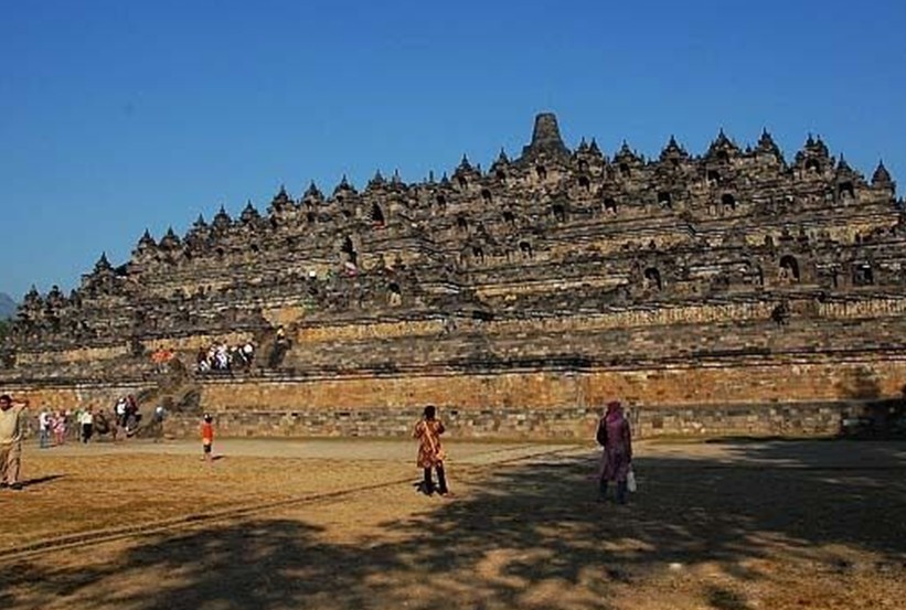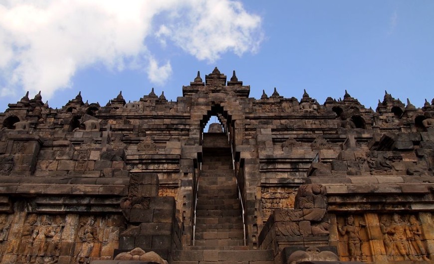 婆羅浮屠位于印度尼西亞,大約于公元750年至850年間,由當(dāng)時(shí)統(tǒng)治爪哇島的夏連特拉王朝統(tǒng)治者興建?!捌帕_浮屠”這個(gè)名字的意思很可能來(lái)自梵語(yǔ)"Vihara Buddha Ur",意思就是“山頂?shù)姆鹚隆?。后?lái)因?yàn)榛鹕奖l(fā),使這佛塔群下沉、并隱蓋于茂密的熱帶叢林中近千年,直到19世紀(jì)初才被清理出來(lái)。與中國(guó)的長(zhǎng)城、印度的泰姬陵、柬埔寨的吳哥窟并稱為古代東方四大奇跡。