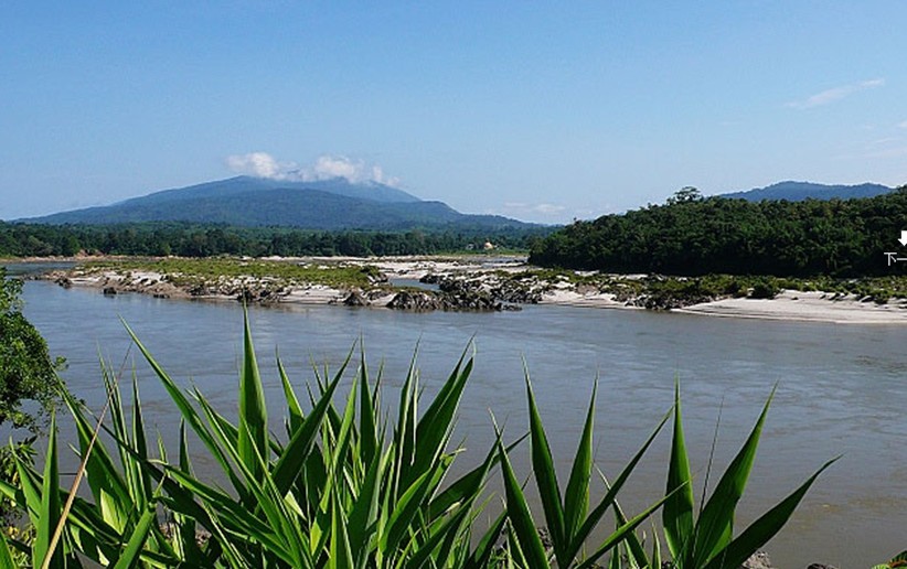 敏宋北距密支那43公里,又叫“三江口”,是恩梅開江和邁立開江的匯合處。敏宋是伊江的神來之筆,是克欽邦的精典景點。站在碩大的白體金塔前的草亭內,江風習習,俯瞰壯麗的三江口,頓覺胸襟開闊,思緒萬千。東邊那條叫恩梅開江,西邊這條就是邁立開江,兩江之間礁峭石奇,江水奔涌,在巨大的魚嘴石處交匯,合二為一,浩蕩南行,氣勢如虹。恩梅開江發(fā)源于西藏察隅縣境內,藏語叫“美爾東曲”;南下入云南怒江州貢山縣境后稱獨龍江;進入克欽邦后更名為恩梅開江。邁立開江源自中緬邊境的大雪山南麓,其東邊是江心坡,西邊是枯門嶺。這兩條江的性格一陰一陽,一剛一柔,陰陽結合后,便成了緬甸的“天惠