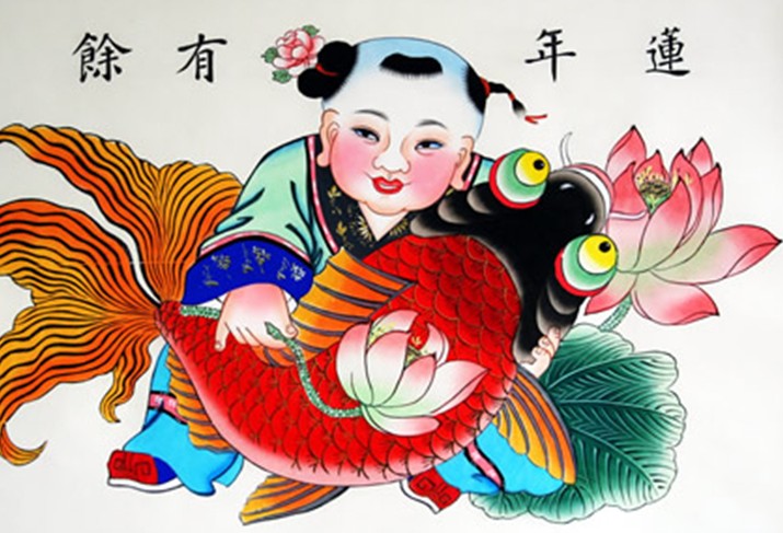 楊柳青年畫題材的一大種類便是娃娃。這些娃娃體態(tài)豐腴、活潑可愛。他們或手持蓮花;或懷抱鯉魚,都象征吉祥美好,非常惹人喜愛。