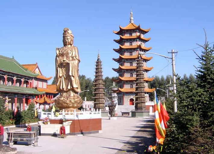 七寶塔在山西平順縣城西北23公里大云寺前。周顯德元年(公元 954年)建。通體用堅硬青石雕造。原為七層,現(xiàn)存五層,高為六米。下三層平面八角形。第一層雕寶裝蓮花、獅子、麒麟、飛馬等。第二層雕伎樂人,體態(tài)輕盈,舞姿優(yōu)美,伴奏者栩栩如生。第三層轉(zhuǎn)角處雕絞龍柱,回旋盤繞。塔檐下飛鳳、飛仙、共命鳥等變化多姿。