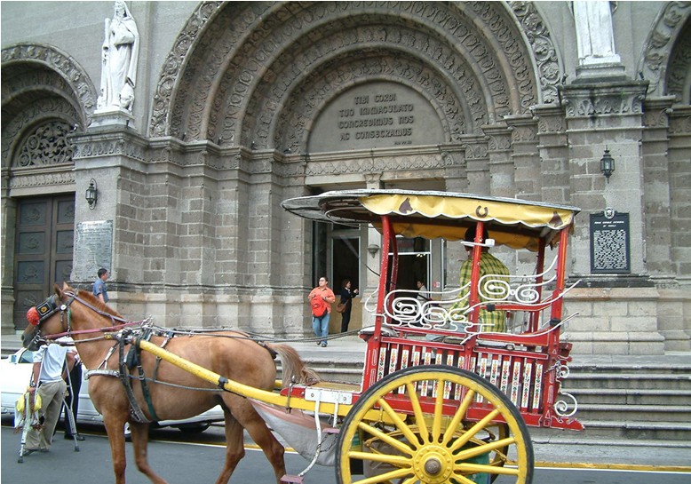 馬尼拉還有一些著名街道,也是旅游者觀光的地方,阿亞拉街原是西班牙財(cái)閥阿亞拉的私有土地,經(jīng)過(guò)多年的不斷擴(kuò)建發(fā)展成為今日繁榮的商業(yè)中心。這里集中了許多公司、餐廳、商店、電影院和馬尼拉第一流的飯店,馬卡蒂商業(yè)中心、帕爾大廈和不少外國(guó)大使館也在這個(gè)地區(qū)。埃斯柯達(dá)大道在巴石河的北側(cè),從西班牙統(tǒng)治時(shí)期起,就是一條繁榮熱鬧的街道,兩旁商店、餐廳林立。黎剎爾路是一條電影院和商店集中的繁華街道,在其后方是古老的唐人街--王彬街。王彬本是個(gè)華僑印刷工.在參加菲律賓人民反抗西班牙殖民統(tǒng)治中有過(guò)功勞,因此,菲律賓人民及這里的僑胞一直紀(jì)念著他。唐人街是一條以石塊鋪成的狹窄街道,兩旁布滿了中國(guó)商店,大部分都有中文招牌。店面之上是小巧玲瓏的騎樓,其街景很像我國(guó)舊時(shí)廣州的格調(diào),街口立有紀(jì)念中菲友誼的一座牌樓,還有一尊華僑王彬的銅像。觀光的馬車來(lái)往奔馳,使整個(gè)“中國(guó)城”生氣盎然。