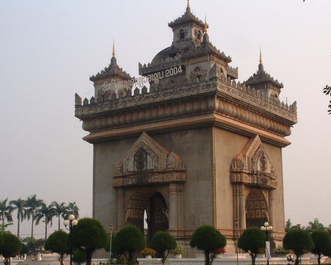 老撾首都萬象,緊緊傍依在湄公河左岸,市區(qū)由西向東和向北伸展,寬闊的濱河大道橫貫全市。街道兩側(cè),椰子、香蕉、檳榔、龍眼、鳳尾、洋槐等高矮植物交錯生長,相映成趣。萬象市隔著湄公河與泰國相望,每到枯水季節(jié),湄公河的大半個河床的淺灘顯露出來,中間僅剩下一條小小的溪流,人們可以涉水走到泰國。作為一個國家的首都,由市區(qū)可以如此方便地到達鄰國,這在世界上是少見的。萬象市區(qū)背面,是著名的老撾中寮萬象平原,蒼郁的森林構(gòu)成了一道天然的屏障。城內(nèi)現(xiàn)代化建筑物掩映在一片綠樹和花卉叢中,這些建筑群,增添了萬象的景色;郊區(qū)多是用幾根長柱支撐起來的老龍族人傳統(tǒng)風(fēng)格的木樓和竹樓,房前屋后常以樹木或柵欄圈成一個或大或小的庭院,在氣候炎熱的老撾,住在這種房屋里,倍感涼爽與舒適。