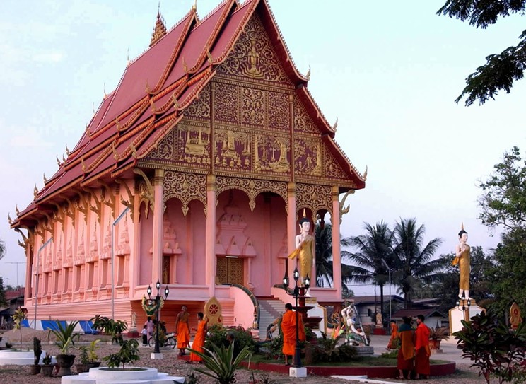 進入萬象市區(qū),給人的感覺是,街道并不十分寬闊,但市面很熱鬧。街道兩側(cè)盡是商店,其中以百貨、飲食、照相和服裝商店為最多。每個商店的店面裝飾講究精致,并且各有特色。街道上小汽車、摩托車、三輪車交叉往來,絡(luò)繹不絕。更為有趣的是,偶爾可以看到木輪子跟人差不多高的牛車悠閑而過,給人留下的是一種異常古樸的印象。每當(dāng)天蒙蒙亮,整座城市還未完全從沉睡中清醒過來的時候,許多腦后打著別致的發(fā)髻,下身穿著鑲有金線銀線織成的花邊筒裙的老龍族婦女、老聽族婦女和穿著花邊襯褂、頸戴銀環(huán)的老松族婦女以及華僑婦女提著竹籃紛紛上市采購。版權(quán)所有山東聊城聊之旅國際旅行社有限公司,轉(zhuǎn)載必究!萬象市內(nèi)設(shè)有多處清晨市場,而以市區(qū)中心東西兩端的大型早市最為熱鬧,除賣蔬菜魚肉的挑販外,還有賣百貨、工藝品、土特產(chǎn)的攤商,人山人海,熙熙攘攘。老撾居民85%以上信奉佛教,萬象市區(qū)到處都可以見到廟宇和寶塔,據(jù)說在老撾佛教鼎盛時期,市內(nèi)有149座佛寺,如今保留下來的有34座。這些古老的佛寺,精美的佛塔以及精湛的浮雕都是老撾古代文化的寶貴遺產(chǎn),而最著名的是市區(qū)北面5公里的塔鑾。凡是到萬象的外國游客,總要靠名游覽塔鑾,因塔鑾被視為老撾眾多名勝古跡中的奇觀,是瀾淪時代文化的杰作。塔鑾,無論是外形還是大小,都很類似中國的白塔,不過它是金色的,四周有30個小塔環(huán)抱,遠遠望去,高高聳立,據(jù)說塔鑾下面埋有佛祖釋迦牟尼的一根頭發(fā)(另說是一塊佛骨),在老撾人心目中是非常神圣的地方。老撾民間每年要舉行“塔鑾節(jié)”,類似中國的廟會。