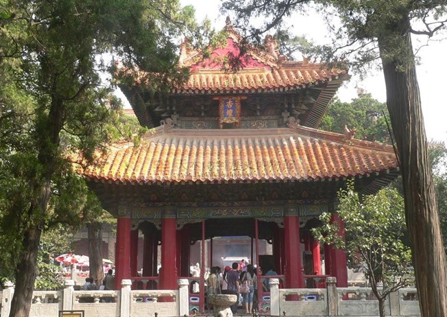 杏壇是孔子教育光輝的象征,位于大成殿前甬道正中,傳為孔子講學(xué)之處,壇旁有一株古檜,稱“先師手植檜”。杏壇周圍朱欄,四面歇山,十字結(jié)脊,二層黃瓦飛檐,雙重半拱。亭內(nèi)細(xì)雕藻井,彩繪金色盤龍,其中還有清乾隆“杏壇贊”御碑。亭前的石香爐,高約1米,形制古樸,為金代遺物。版權(quán)所有山東聊城聊之旅國際旅行社有限公司,轉(zhuǎn)載必究!該壇建于宋代,四周環(huán)植以杏,故名;金代又于壇上建亭。明代后期重修,即今日杏壇。