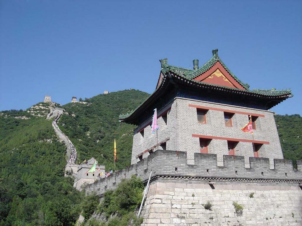 居庸關(guān)長(zhǎng)城建筑在一條長(zhǎng)達(dá)15公里的山谷中間,兩旁山巒重疊,樹木蔥郁,山花爛漫,景色瑰麗,遠(yuǎn)在800年前的金代,就被列為燕京八景之一,稱為“居庸疊翠”。居庸關(guān)是從北面進(jìn)入北京的門戶,有“一夫當(dāng)關(guān),萬(wàn)夫莫開”的氣勢(shì)。居庸關(guān)的中心,現(xiàn)在還保存著一個(gè)雕刻精美的漢白玉石臺(tái),叫“云臺(tái)”。在元朝時(shí),這臺(tái)上建有三座石塔,于元末明初被毀。三塔毀后,在此臺(tái)上又建一院,名“泰安寺”,此寺于清康熙年間被火焚毀,只剩下這個(gè)基座------云臺(tái)。云臺(tái)的券門內(nèi),石壁上雕刻有四大天王 像,刻工精巧,姿態(tài)傳神;還有梵文、藏文、蒙文、維吾爾文、西夏文、漢文六種文字刻成的佛經(jīng)。去八達(dá)嶺長(zhǎng)城游覽一是從市內(nèi)乘游覽專車前往,費(fèi)用高一些,但比較舒服,并可同時(shí)游覽十三陵。從北京去八達(dá)嶺的公路,經(jīng)修整后,平坦寬闊。也可以坐火車前往,早7時(shí)40分發(fā)車,車行2小時(shí)多。八達(dá)嶺游人鼎盛,平均一天游客約萬(wàn)余人。