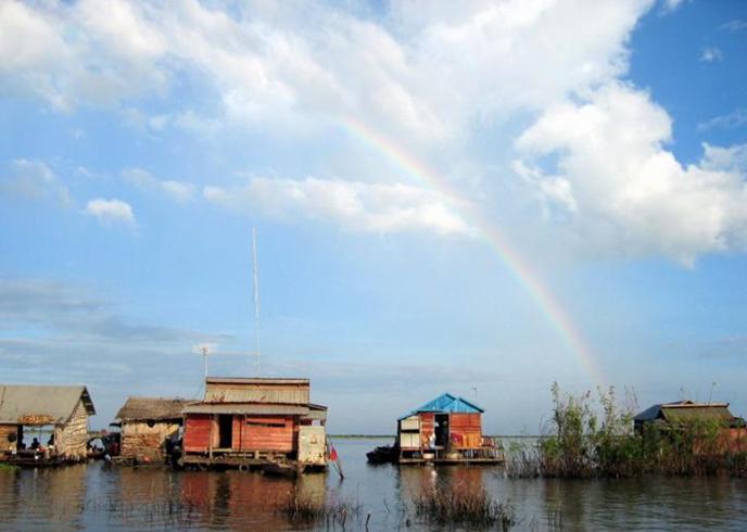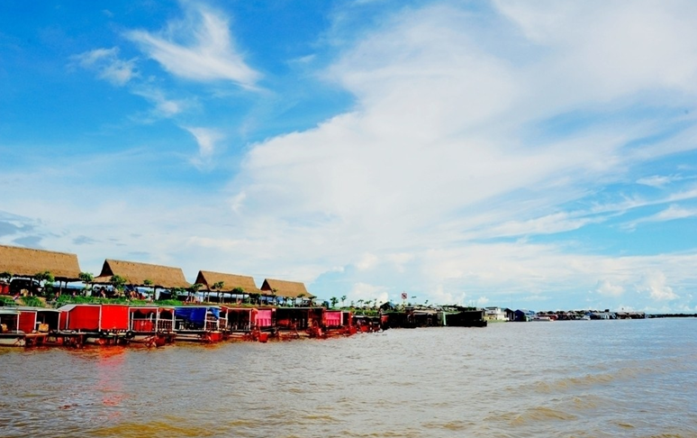 洞里薩湖又名金邊湖,位于柬埔寨境內(nèi)北部,呈長(zhǎng)形位于柬埔寨的心臟地帶,是東南亞最大的淡水湖泊。湖濱平原平坦、廣闊,長(zhǎng)500千米、寬110多千米,西北到東南,橫穿柬埔寨,在金邊市與貫穿柬埔寨的湄公河交匯。它像一塊巨大碧綠的翡翠,鑲嵌在柬埔寨大地之上,為高棉民族的發(fā)展與繁榮提供了堅(jiān)實(shí)的資源保障,是柬埔寨人民的“生命之湖”。
