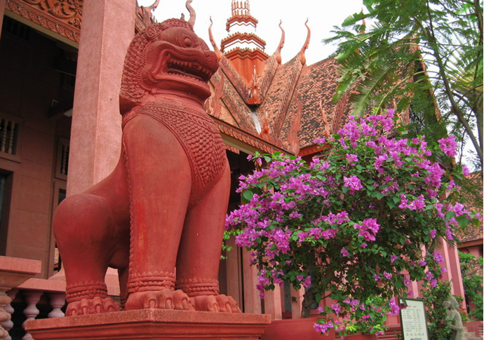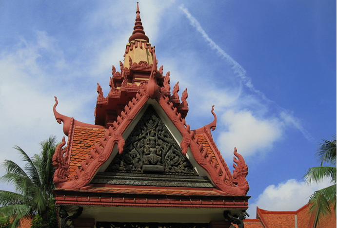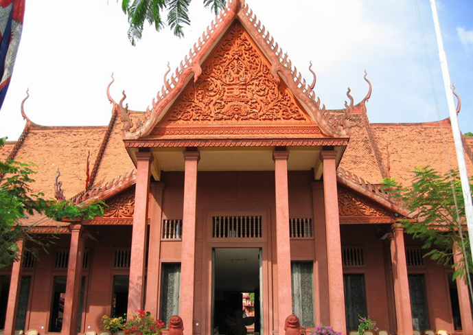金邊國立博物館是柬埔寨最著名的博物館。在金邊舊王宮北鄰。1917年法國人G。格羅里葉設(shè)計(jì)并開始興建,1920年建成。博物館由主館和圍繞中庭的 3個陳列館組成。主館為朱紅色的高棉傳統(tǒng)建筑,收藏高棉民族遺留下來的印度教及佛教的石雕,主要是 6~15世紀(jì)的作品,是研究高棉雕刻發(fā)展史的重要資料。陳列有石雕像、青銅像、石碑、陶器、金屬工藝品以及19、20世紀(jì)王室的日用品和樂器等。