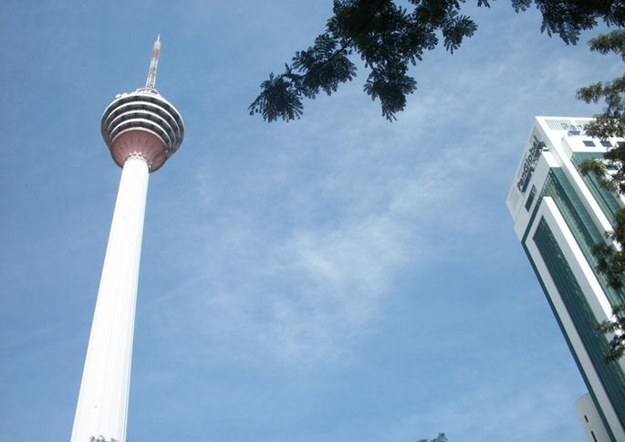 吉隆坡塔是世界最高的一座鋼筋水泥構(gòu)筑的高塔,塔高421米,使用了45,000立方米水泥。登上吉隆坡塔(Menara Kuala Lumpur)的瞭望臺(tái),從這座東南亞第一塔從容地俯視繁忙的吉隆坡,竟有眾人皆忙我獨(dú)閑的笑看江湖念頭。放眼望去,群山環(huán)抱,加上巴生河與鵝麥河的交匯,孕育了吉隆坡的人杰地靈;青翠的遠(yuǎn)山露出橙色傷疤,那是發(fā)展的印記了。