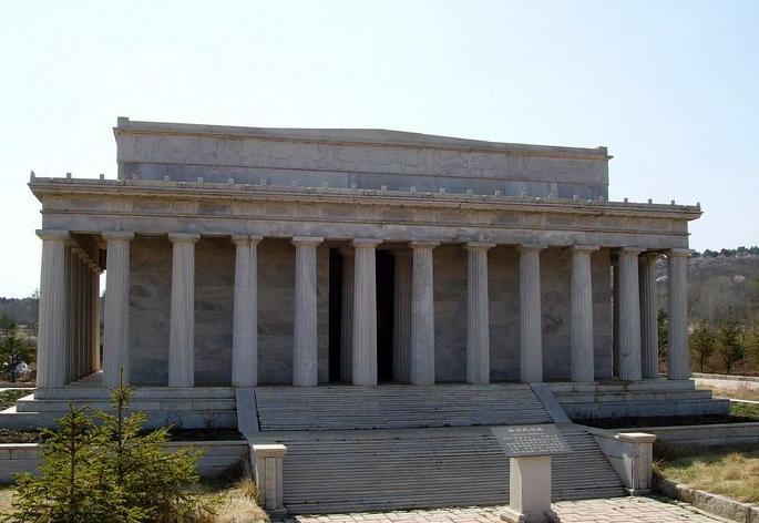 在美國南達(dá)科他州西南部海拔約1892米的布萊克山區(qū),一座高峰上刻鑿著美國歷史上卓具功勛的四位總統(tǒng)——華盛頓、杰斐遜、林肯和羅斯福的石雕頭像。每座頭像高18米,從1927年開始雕鑿,1941年才初步告成。四尊頭像充分展露其凝練的神態(tài),他們目光前視,儀表莊嚴(yán),用以代表美國業(yè)績的四大象征:創(chuàng)建國家、政治哲學(xué)、捍衛(wèi)獨(dú)立、擴(kuò)張與保守。總統(tǒng)山已不單是這個地區(qū)和城市的標(biāo)志,而且成為全美國教育的重要藝術(shù)中心。
