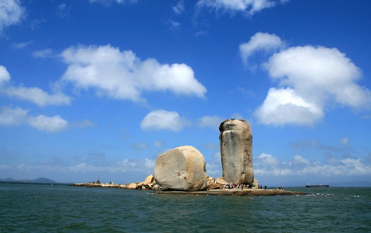 從看澳村岸邊坐渡船,十幾分鐘就到達礁石上,礁石底部是一組平坦完整的巖石。兩個石柱均由粗粒灰白色的花崗巖組成 東側(cè)的一個高達33米,胸寬9米,厚8米;西側(cè)的一個高17米,胸寬15米,厚8米。版權(quán)所有山東聊城聊之旅國際旅行社有限公司,轉(zhuǎn)載必究!兩個石柱的底部都是近似四方形體,直立在礁石上。據(jù)地質(zhì)學家考證是世界上最大的花崗巖球狀風化海蝕柱。由于它的奇特壯觀,對游人有著強烈的震撼力和吸引力。建設(shè)部與中科院的專家稱之為:“壟斷性的世界級旅游資源。”明代旅行家陳第曾譽之為“天下奇觀”, 清朝女詩人林淑貞詩贊:“共說前朝帝子舟,雙帆偶趁此句留;料因濁世風波險,一泊于今纜不收.