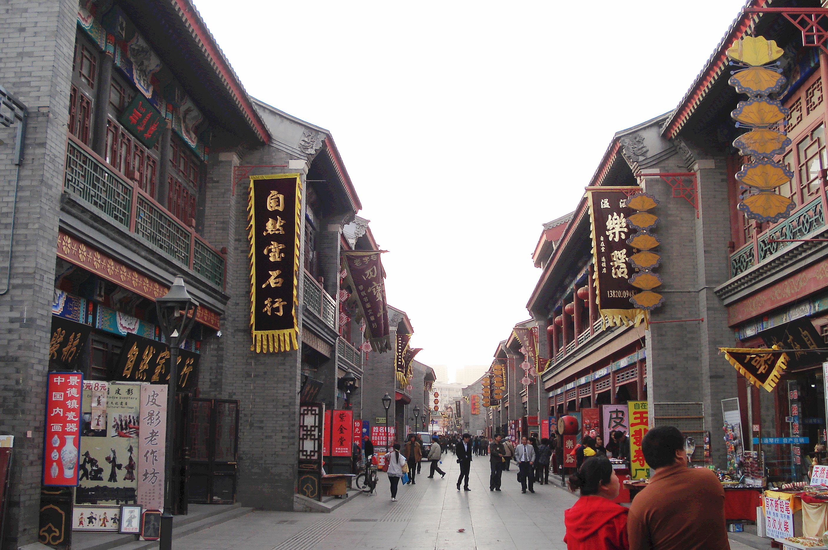 由仿中國(guó)清代民間小式店鋪組成的街道 。 以元代古跡天后宮為中心,古文化街位于天津南開(kāi)區(qū)東北隅東門外,海河西岸,北至東北角,位于鬧市區(qū),起老鐵橋大街(宮北大街),東臨海河、南至水閣大街(宮南大街)。南北街口各有牌坊一座,上書“津門故里”和“沽上藝苑”,長(zhǎng)687米,寬5米,系商業(yè)步行街。這里在古代是祭祀海神和船工聚會(huì)娛樂(lè)之場(chǎng)所?,F(xiàn)已修復(fù)的古文化街包括天后宮及宮南、宮北大街。天后宮俗稱“娘娘宮”,是古文化街上的主要參觀旅游項(xiàng)目。