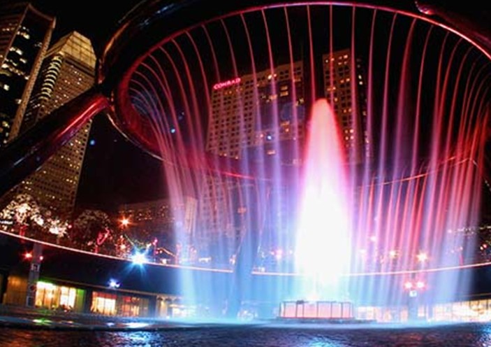 這座噴泉耗資新加坡幣600萬(wàn)元建成。每晚8點(diǎn)開始,『財(cái)富之泉』均有一場(chǎng)多媒體噴泉秀,有興趣的民眾不妨前往觀賞,當(dāng)燈光與水幕交織出的神秘光彩煞是好看!