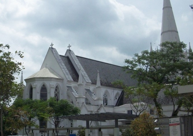 一座潔白的歌特式教堂,高高的尖頂直插藍天。像一位高大而圣潔的神的使者,他默默佇立在喧囂的市中心,卻讓每一個見到他的人,心中都會不由自主地生起向往和敬畏。這就是新加坡最著名的一座教堂——圣安德烈教堂。 潔白亮麗的外墻是圣安德烈教堂最傲人的特點之一。經(jīng)歷了一百多年的滄桑卻仍舊那么光彩照人,“就是青春無瑕”,傳說肌膚勝雪的圣安德烈教堂,據(jù)說是將貝殼磨成灰,加入蛋白和糖調成糊狀,再放入浸泡到柔軟的椰子殼,就制成了一種實用又美觀的石膏。將其涂在建筑的表面,不容易出現(xiàn)裂痕,而且潔白有光澤。