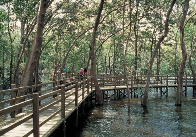公園是由一個游人中心和三條人行道組成的。這三條人行道都有幾公里長,為了保存自然風(fēng)味,它們都是由碎石細(xì)沙鋪成的,每一條路都能把游人帶到不同的風(fēng)景點,如傳統(tǒng)養(yǎng)蝦池淡水池等。為了使生態(tài)環(huán)境的破壞程度降到最低點,園內(nèi)所有設(shè)施,如橋梁、亭子、觀鳥屋等都用木頭建造,園里的道路也是原始的,沒鋪柏油或石板,絕大部分的花木也都是自然繁殖的。