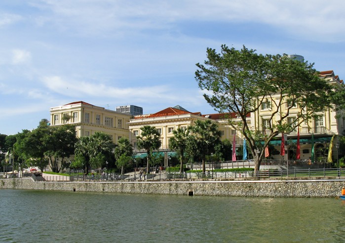 1864年建於皇后坊的亞洲文明博物館 (Asia Civilisations Museum),早期是英國殖民地以及現(xiàn)任政府的辦公大樓,有著濃厚的英式新古典主義風(fēng)格的建筑。進(jìn)入該博物館內(nèi),重點(diǎn)在介紹新加坡歷史源流,當(dāng)游人進(jìn)入展廳,曾是沿著新加坡河岸發(fā)展的新加坡,不斷有中國帆船、印度船、 阿拉伯獨(dú)桅帆船、葡萄牙戰(zhàn)艦和武吉士人(Bugis)的縱帆船造訪這個質(zhì)樸的海港,館內(nèi)過往的影像面對窗外運(yùn)河龐大商船吞吐的海港,今非昔比的繁華景象,形成了一個強(qiáng)烈的對比。這就是亞洲文明博物館企圖讓訪客深入了解新加坡的特殊文化。19世紀(jì)英人萊佛士爵士為拓展英國在亞洲的貿(mào)易發(fā)展,奠定了這個小漁港的未來發(fā)展。
