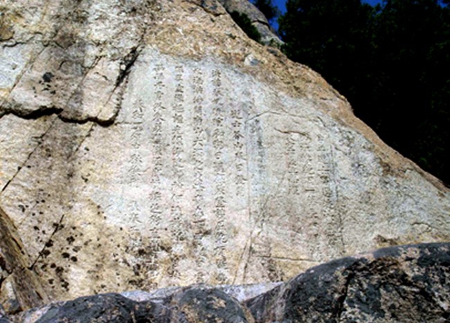 大基山海拔478米,自山谷至山頂分布?xì)v代摩崖刻石24處。北魏光州刺史、著名書法家鄭道昭于公元512年在此山留下寶貴題刻12處,均刻在山內(nèi)險峻的摩崖之上,主要刻石有《登大基山詩》、《中明之壇》等,同云峰山鄭道昭刻石成一體,同為國際書法旅游專線,每年接待日本書法團體約600人次,1998年被國務(wù)院定為國家級重點文物保護單位。