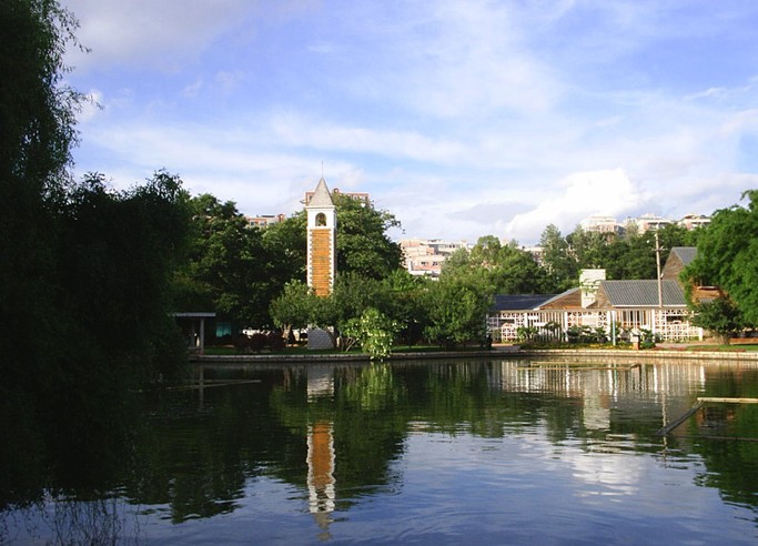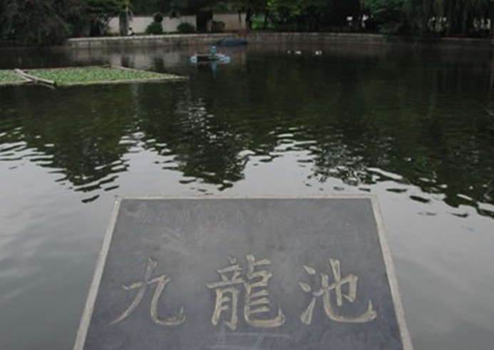 位于玉溪市州城西北10公里奇黎山下的九龍池,又名奇黎溪, 是當(dāng)?shù)刂募丫皠俚刂弧?據(jù)《重修九龍池碑記》載, 寺廟初創(chuàng)于清朝之前, 幾經(jīng)擴(kuò)建,到公元1729年(雍正七年),又“新作石橋,長(zhǎng)虹臥波,幾于騰空直上。繼修大寺閣,燃然一新,儼若普陀”。可見(jiàn), 200多年前,九龍池廟宇已頗具規(guī)模。 九龍池風(fēng)光,最吸引人的地方,首先是那潭十分清澈明凈的池水。乾隆《新興州志》描寫(xiě)其水,從“巖石間潺潺流出,聚為一泓,清可鑒發(fā)”。不論春夏秋冬,無(wú)數(shù)游魚(yú),搖尾相戲。晴日,池旁斑駁的樹(shù)影清晰如畫(huà)地印在池中;微風(fēng)吹來(lái),則漣漪輕蕩,樹(shù)影碎散,魚(yú)群晃動(dòng),別有佳趣。有池子四周,設(shè)有欄桿。 池上,一橋飛跨正中,橋洞門(mén)頭上,刻有“九龍池”三字。龍?zhí)兜某鏊?,比本地其他泉池,都要大得多,歷來(lái)是灌溉玉溪壩子“四十二屯”萬(wàn)畝良田的重要水源之一。故前人有詩(shī)吟道:“山滿青光水滿池,滔滔利澤本無(wú)私。未知百里臨民侯,可似九龍作雨時(shí)。”九龍池的山巖峭壁聳峙, 層巒疊嶂。 沿著池畔臺(tái)階拾級(jí)而上,在險(xiǎn)峻的林壑之巔,建有樓臺(tái)亭閣,雕梁畫(huà)棟,金碧輝煌。大觀樓、聽(tīng)泉樓、三圣閣、大士閣、文星閣等,均有詩(shī)詞對(duì)聯(lián)可以觀賞。“欲窮千里目,更上一層樓”。文星閣位置最高,巍峨矗立,直插云霄。只要登樓遠(yuǎn)眺,眾山皆小,翡翠般的玉溪壩子,可盡收眼底。遠(yuǎn)處山川,連綿不絕,此起彼伏; 星羅棋布的村舍,縷縷炊煙,裊裊升起;縱橫交錯(cuò)的林蔭大道,車(chē)水馬龍,往返不息。視近處,龍池周?chē)?,古木參天,郁郁蔥蔥,鳥(niǎo)語(yǔ)花香,林濤陣陣。池子?xùn)|邊的平場(chǎng)上,有古戲臺(tái)一座,至今尚存。歷史上,每年春節(jié)在此大鬧花燈是個(gè)傳統(tǒng)。四面八方來(lái)游玩的人,真是人山人海。 除池、 亭、 山、水之外,九龍池還有上中下松園,三園相近。園內(nèi)的云南巨松,拔地而起,蒼勁挺拔,高達(dá)十?dāng)?shù)丈,相傳為明代寺內(nèi)老僧所值。座落在龍池下面的飛井海(水庫(kù)),水面寬闊,碧波如玉。西岸的農(nóng)村,坡坡桃林,處處綠蔭。山道彎彎,阡陌相連。當(dāng)盛產(chǎn)飛井桃,其味甜美,遠(yuǎn)近聞名。近年來(lái),當(dāng)?shù)厝嗣裾畵芸钸M(jìn)行修復(fù),建立了專(zhuān)門(mén)管理林園機(jī)構(gòu),使古老的九龍池恢復(fù)了青春。