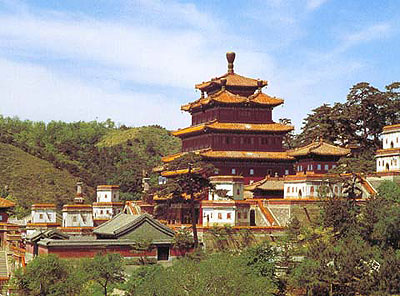 在避暑山莊周圍依照西藏、新疆喇嘛教寺廟的形式修建喇嘛教寺廟群,供西方、北方少數(shù)民族的上層及貴族朝覲皇帝時禮佛之用。在避暑山莊的東面和北面,武烈河兩岸和獅子溝北沿的山丘地帶,共有11座寺院。因分屬8座寺廟管轄,其中的8座由清政府直接管理,故被稱為“承德外八廟”。廟宇按照建筑風(fēng)格分為藏式寺廟、漢式寺廟和漢藏結(jié)合式寺廟三種。這些寺廟融和了漢、藏等民族建筑藝術(shù)的精華,氣勢宏偉,極具皇家風(fēng)范。這12座建筑風(fēng)格各異的寺廟,是當(dāng)時清政府為了團(tuán)結(jié)蒙古、新疆、西藏等地區(qū)的少數(shù)民族,利用宗教作為籠絡(luò)手段而修建的。這些廟宇多利用向陽山坡層層修建,主要殿堂聳立突出、雄偉壯觀。