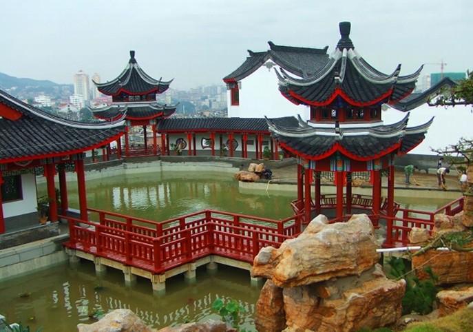 毓璜頂公園位于芝罘區(qū)偏南的一座小山上的毓璜頂公園,因有玉皇廟而得名。毓璜頂松柏掩映,殿閣儼然,宛如一幅清秀淡雅的水墨畫,其主要建筑有小蓬萊坊、玉皇廟和玉皇閣。清光緒十九年重修玉皇廟時(shí),由文人雅士提議更名為毓璜頂。“毓秀鐘靈地不愛(ài)寶,璜琮璞玉山自生輝”的對(duì)聯(lián)鐫刻于玉皇廟紅漆大門之上,對(duì)聯(lián)的意思是說(shuō)大自然的靈秀之氣匯集于此,生出了各式各樣的美玉寶石。玉皇廟始建于元代,后經(jīng)明清兩代重修和擴(kuò)建,終于形成了現(xiàn)在布局協(xié)調(diào)的建筑群。毓璜頂風(fēng)光非凡,俯瞰大海,人在其間有如進(jìn)入了蓬萊仙境,故人們又稱這里為“小蓬萊”,大自然的瑰麗景色和煙臺(tái)市區(qū)的美麗豐姿,游客在此都可盡情飽覽。