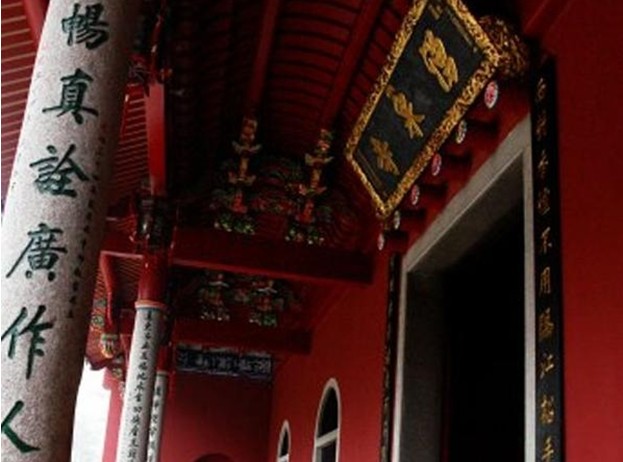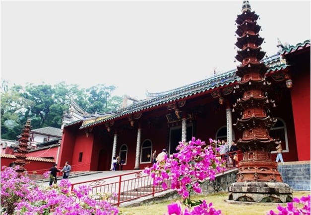 涌泉寺山門保留著唐朝建筑風(fēng)格,為一有框無(wú)門的空門,石門柱上鐫刻著一副短聯(lián):“凈地何須掃,空門不用關(guān)”。此聯(lián)構(gòu)思奇巧,意寓在涌泉寺山門東邊,有一石砌拱門,上書“靈源深處”。傍崖而下石階60余級(jí),中裂一澗,寬約3米,深約10米,似石洞,故名“靈源洞”。版權(quán)所有山東聊城聊之旅國(guó)際旅行社有限公司,轉(zhuǎn)載必究!因?yàn)椤昂人畮r”石刻,這一帶又統(tǒng)稱“喝水巖”。靈源洞兩側(cè),薈萃了自宋以來(lái)摩崖石刻200多段,約占鼓山現(xiàn)存摩崖題刻的一半,行、草、隸、篆諸體俱備,猶如一座天然石刻書法寶庫(kù),譽(yù)為“東南碑林”。題刻中有宋刻近百段,元刻12段,明刻30余段,清朝至今百余段,其中尤以宋代名書法家蔡襄的“忘歸石”,施元長(zhǎng)的“喝水巖”以及理學(xué)家朱熹,民族英雄李綱和當(dāng)代郭沫若等題詠石刻最為著名