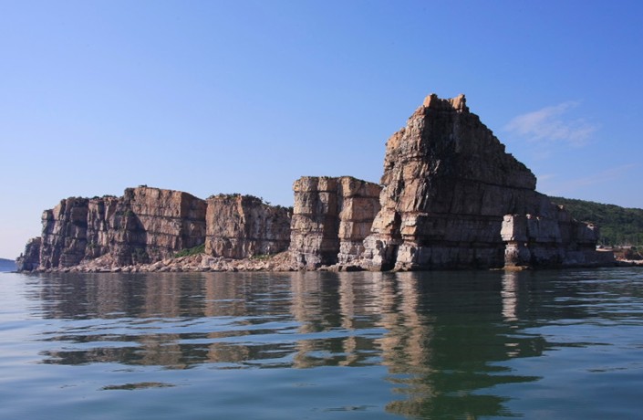 龍爪山位于大黑山島北端,距離長島縣城7海里;龍爪山因山下的龍爪潭而得名。孤峰突起,方方正正,四壁如刀砍斧削一般,極陡峭險峻,遠遠望去,就像一方巨大的玉印似的,所以此山又叫玉印山。