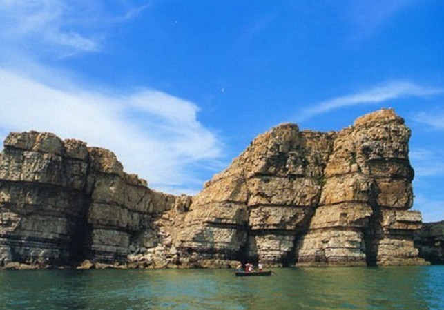 彌陀礁位于山東煙臺市長島縣以北50公里處,由許多小型的礁石和小島組成。自北向南,可分為三個島群:北島群有南隍城島、北隍城島和大欽島、小欽島等。如今,那嵌在赭青色石壁上的九個一米見方的大字,仍依稀可辨。據(jù)中國佛教協(xié)會會長趙樸初先生解釋,“南心濟”為人名,“宅地”為領(lǐng)地之意,“阿彌陀佛”即無限光明。