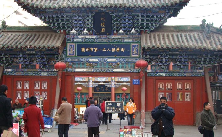 清乾隆年間(1736—1795)毀于大火,后重修。坐北向南,占地12000平方米,建筑面積4000平方米。大門3間,為忠烈侯坊,二門為硬山頂式環(huán)廊戲樓,北有卷棚歇山頂式享殿,后為重檐歇山頂式正殿,左右有廂房、鐘鼓樓等?;乩认略斜诋?,現(xiàn)已不存。1956年辟作蘭州市第一工人俱樂部。