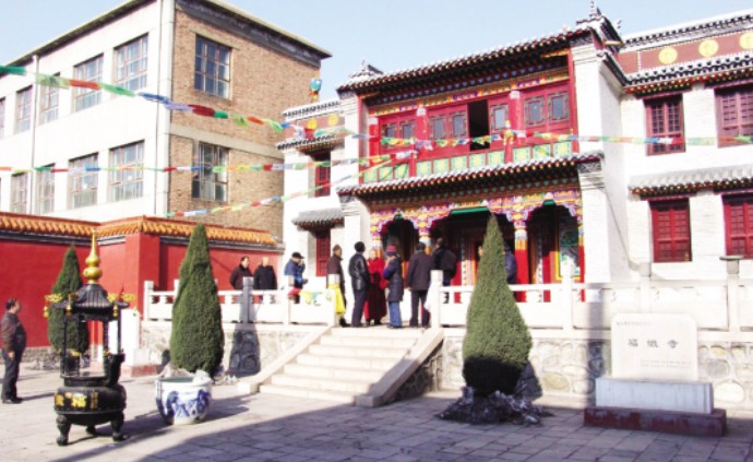 位于包頭市東河區(qū)拐子街,約建于清乾隆年間,又名"福徵寺",是包頭城內(nèi)唯一的一座蒙古族召廟,藏式建筑結(jié)構(gòu),磚石墻壁,用石灰水澆灌成純白色,兩層樓堂,底層為經(jīng)堂,內(nèi)無間墻,兩排圓木柱直通到頂,樓上分為前后兩座佛堂,分別供奉釋迦牟尼和其它塑畫神像。正前方是滿面門窗,外有護欄走廊,東西墻壁設(shè)長方形小窗,環(huán)召有通行走廊和花欄圍墻,在召廟兩側(cè),有兩所大院,版權(quán)所有山東聊城聊之旅國際旅行社有限公司,轉(zhuǎn)載必究!設(shè)有客堂、廳舍、廚房貨倉、馬棚馬圈等,總面積約7000平方米。