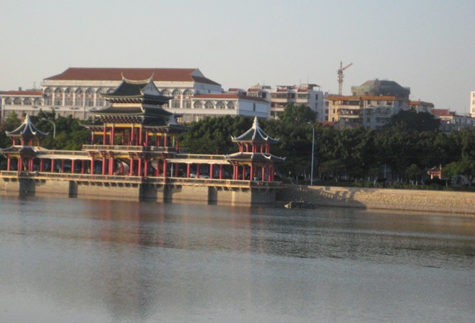 龍舟池陳嘉庚先生于1950年在海灘上筑堤圍墾外、中、內(nèi)三池。外池俗稱“龍舟池”,寬300米,長(zhǎng)800米,總面積24萬(wàn)平方米。池畔建有式樣各異的“啟明”、“南輝”、“長(zhǎng)庚”及“左”、“右”、“逢”、“源”七個(gè)亭子。