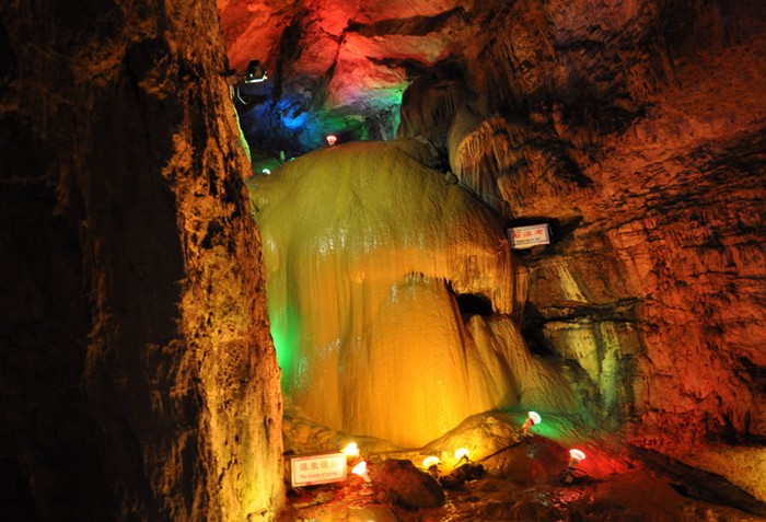 淄博開(kāi)元溶洞是因洞內(nèi)有唐代開(kāi)元年間的摩崖石刻而得名,洞體大而高,最高處達(dá)30余米,寬處20余米,長(zhǎng)1280米,分八個(gè)大廳.洞內(nèi)空間大,氣勢(shì)宏偉,是江北最大的溶洞.洞內(nèi)各種鐘乳石姿態(tài)各異,或高大崎崛,或精怪玲瓏,鬼斧神工,渾然天成,置身其中,如入仙境.洞內(nèi)新石器時(shí)期,唐,宋等各時(shí)期的摩崖石刻更令人稱絕.