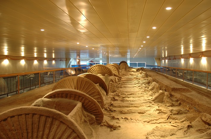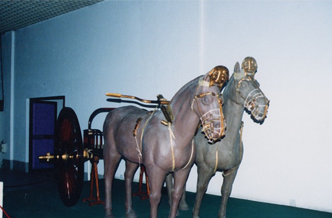 春秋殉馬坑殉戰(zhàn)車10輛,馬32匹,規(guī)模之大,配套之齊全,馬飾之精美,為當代全國之冠,列全國十大考古發(fā)現(xiàn)之一。古車陳列展廳陳列后李車馬坑出土的各類車和臨淄地區(qū)出土的古代車的復原車,直至全國出土的各類古代車復原車。集中國古車研究成果之大成,薈華夏歷代車乘珍品之精粹,充分展示了我國車乘的悠久歷史和造車技術在世界車輛發(fā)展史上的領先地位.