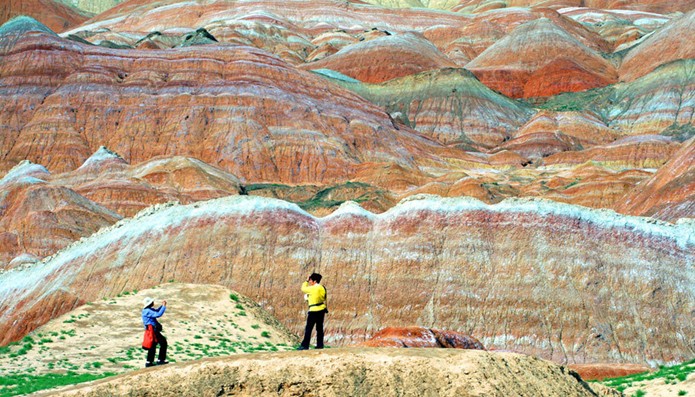 張掖丹霞地質(zhì)公園經(jīng)過雨水洗潤,甘肅張掖丹霞地質(zhì)公園內(nèi)色彩斑斕的戈壁丹霞地貌令游客流連忘返。張掖丹霞地質(zhì)公園位于臨澤縣倪家營鄉(xiāng)和肅南縣白銀鄉(xiāng)交界處,總面積約510多平方公里。