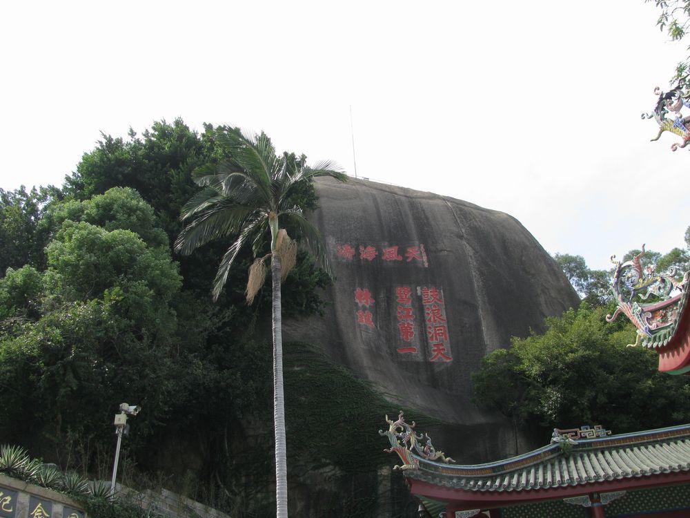 日光巖勝景聞名四方,古往今來,一直吸引著許多文人墨客,他們陶醉于這天風(fēng)海濤中,吟詩作賦,留下不少珍貴的手跡。走過日光巖寺山門,抬頭可以仰望到一個巨大的山崖。巨崖上的題刻——“鼓浪洞天”為日光巖仙境般的景色做了精彩的概括,是明朝萬歷元年了一中所寫的;“鷺江第一”則點出日光巖是廈門第一勝景,是清代道光元年林誠所書;“天風(fēng)海濤”恰到好處指出日光巖的特點,是民國四年許世英所寫。