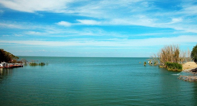 博斯騰湖湖水域遼闊,煙波浩淼;西南小湖區(qū),河道蜿蜒,蘆葦叢生,荷花草怒放,禽鳴魚躍,一派江南水鄉(xiāng)景色,故有“西塞明珠”之美稱。博湖風(fēng)光瑰麗,集大漠與水鄉(xiāng)景色于一體,距南疆重鎮(zhèn)庫(kù)爾勒市只有60多千米。近年博湖的蓮花湖、相思湖、回歸大自然等旅游景點(diǎn)的旅游設(shè)施已初具規(guī)模,開(kāi)辟了游艇、滑水、湖濱浴場(chǎng)等娛樂(lè)項(xiàng)目,還可以品嘗到烤魚和原汁原味的博斯騰魚宴。 博湖是南疆一個(gè)重要的新興水上游樂(lè)旅游區(qū),其北岸的金沙灘被譽(yù)為新疆的“夏威夷”。