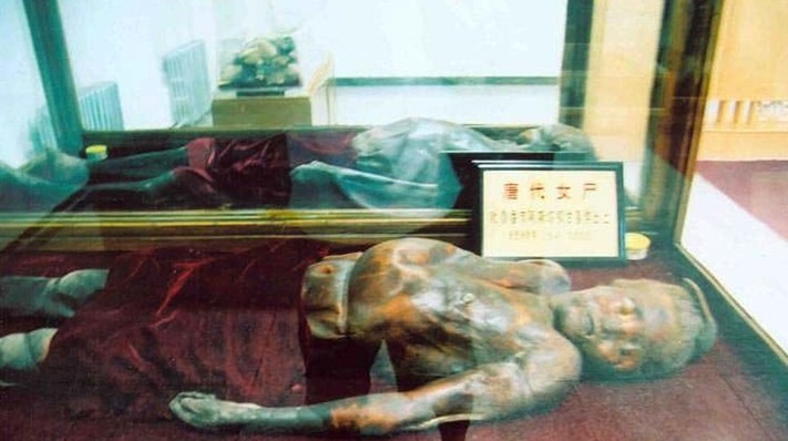 古尸陳列廳現(xiàn)展出晉——唐時(shí)期的千年古尸五具,其中高昌王國侍衛(wèi)軍首腦人物張寧夫婦的干尸最為引人注目,由北京自然博物館復(fù)原的張寧夫婦像形態(tài)逼真,栩栩如生。吐魯番的干尸是由于氣候、地理環(huán)境等多種自然因素而形成的,它與古埃及以人工方式處理過的