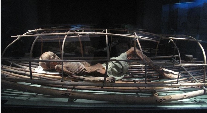 其中吐魯番地區(qū)出土古尸陳列廳是最具神秘性和吸引力的展廳。這里展出的11具干尸,從春秋戰(zhàn)國時(shí)期至清代時(shí)期的古尸,主要出自阿斯塔那—哈拉和卓墓葬群和蘇巴什古墓群、洋海古墓群等。