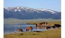 湖水系高山溶雪匯集而成,水深近百米,清純怡人。每到盛夏,湖周綠草如茵,繁花似錦,最為明艷。即使是盛夏天氣,湖水的溫度也相當(dāng)?shù)?,乘游艇在湖面上行駛,一陣陣涼風(fēng)吹來,暑氣全消,是避暑的好地方。