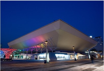 表演場(chǎng)-面積:41米x41米,最多可設(shè)位:12,500 ,。地面:混凝土,地面負(fù)荷:每平方米1,800千克,樓高:23米,設(shè)備:各式組合式表演臺(tái),高懸中央的電視放映系統(tǒng),各式新型的舞臺(tái)及技術(shù)設(shè)備 。