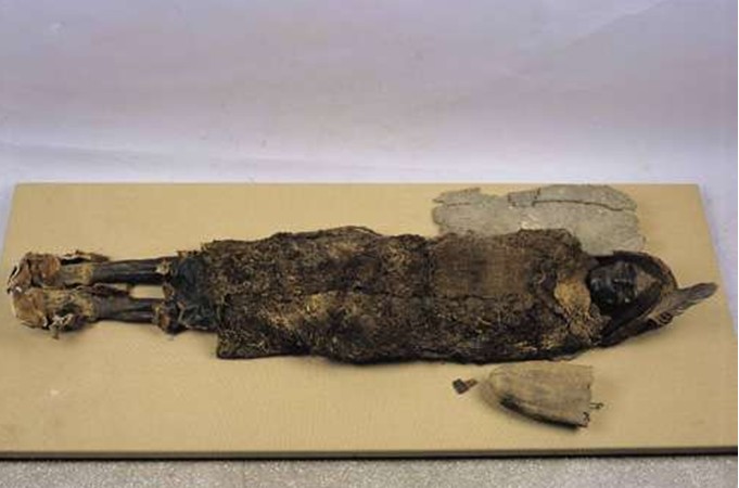 轟動(dòng)一時(shí)的小河墓地出土的文物以及干尸更是讓世人嘆為觀止,此次首次展出小河墓地的精品文物以及成年女性干尸,女尸身長(zhǎng) 158 厘米,皮膚呈灰白色,胸乳下垂明顯。頭面部保存最好,窄額,寬顴骨,眼窩深凹,依稀可見(jiàn)眼睫毛,鼻梁尖而小巧,嘴緊閉?;易厣^發(fā)自然中分,長(zhǎng)至頸肩部。頭發(fā)表面似用膠狀物涂抹過(guò),一縷縷粘結(jié)在一起。很難看出她生活在3800年前。