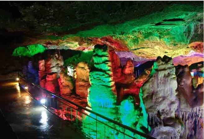 “金龍吐珠”:這一級瀑布有60多米,泉水從山凹頂端噴薄而出,飄逸而下,似一巨幅長長的白緞,半透明中閃出光亮;飛揚(yáng)的水花,陽光下如飛珠撒玉,五彩繽紛。由于兩股細(xì)流像龍的將軍牙,兩岸石壁上形態(tài)各異的古木、版權(quán)所有山東聊城聊之旅國際旅行社有限公司,轉(zhuǎn)載必究!藤竹酷似龍須、龍爪……從整體看,倒似山凹處伸出一條活生生的龍頭,不斷地從口中傾吐珍珠寶玉,故人們美其名“金龍吐珠”。