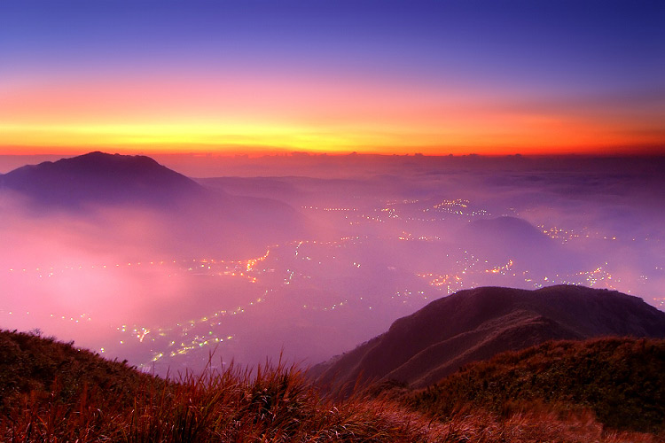 抵達(dá)大屯主峰頂,則是一片視野遼闊的景象。天氣晴朗時(shí),往西可清晰地看到大屯南峰、大屯西峰、面天山三峰并置;還有伴其右、平版權(quán)所有聊城聊之旅旅行社有限公司,轉(zhuǎn)載必究!緩的地形中凸起的二子山;往北可看到烘爐山、菜公坑山和小觀音山等系列山嶺;東邊的七星山以圓錐狀的坐姿穩(wěn)定地屹立著;南方的山隨山勢(shì)漸緩而迎向廣闊的大臺(tái)北盆地;遠(yuǎn)眺綠色群山環(huán)繞的大臺(tái)北盆地,就像大冠鷲在高空上俯視臺(tái)北景觀一樣,一定令你難忘!