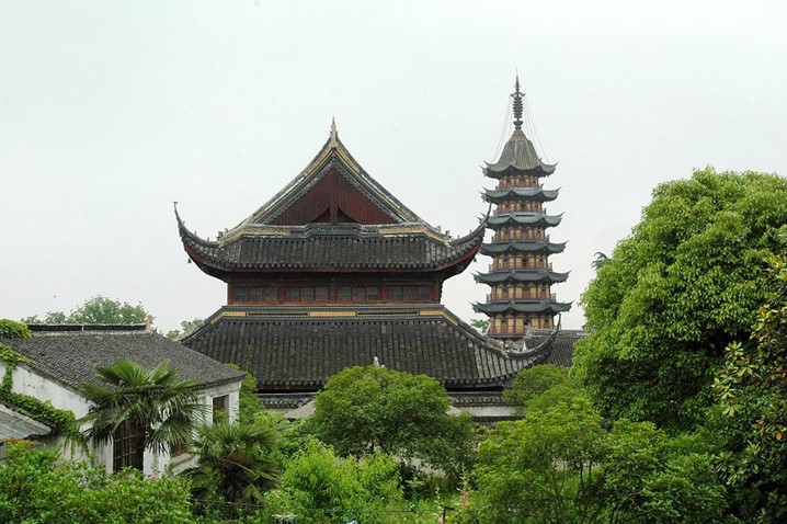 寒山寺位于蘇州城西古運河畔楓橋古鎮(zhèn),始建于南朝蕭梁代天監(jiān)年間(公元502~519年),初名“妙利普明塔院”。相傳唐代高僧寒山自天臺山國清寺來此住持,唐代貞觀年間改名為寒山寺,成為吳中名剎。唐代詩人張繼舉棹歸里,夜泊楓橋,一首《楓橋夜泊》膾炙人口,寒山鐘聲傳播中外。