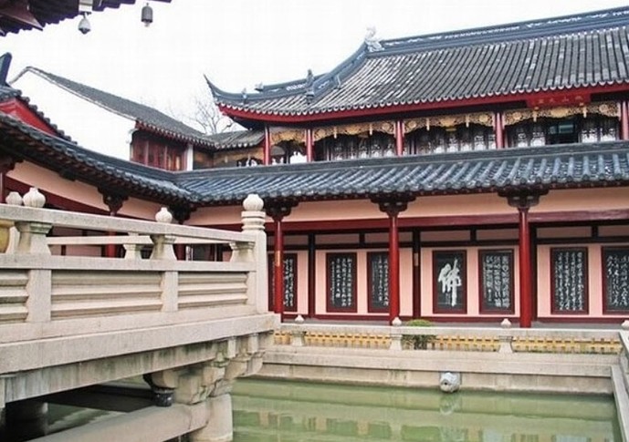 寒山寺(Hanshan Temple) 寒山寺在蘇州城西閶門外5公里外的楓橋鎮(zhèn),建于六朝時期的梁代天監(jiān)年間(公元502-519年),距今已有1400多年。原名“妙利普明塔院”。唐代貞觀年間,傳說當(dāng)時的名僧寒山和拾得曾由天臺山來此住持,改名寒山寺。1000多年內(nèi)寒山寺先后5次遭到火毀(一說是7次),最后一次重建是清代光緒年間。歷史上寒山寺曾是我國十大名寺之一。寺內(nèi)古跡甚多,有張繼詩的石刻碑文,寒山、拾得的石刻像,文徵明、唐寅所書碑文殘片等。寺內(nèi)主要建筑有大雄寶殿、廡殿(偏殿)、藏經(jīng)樓、碑廊、鐘樓、楓江樓等。